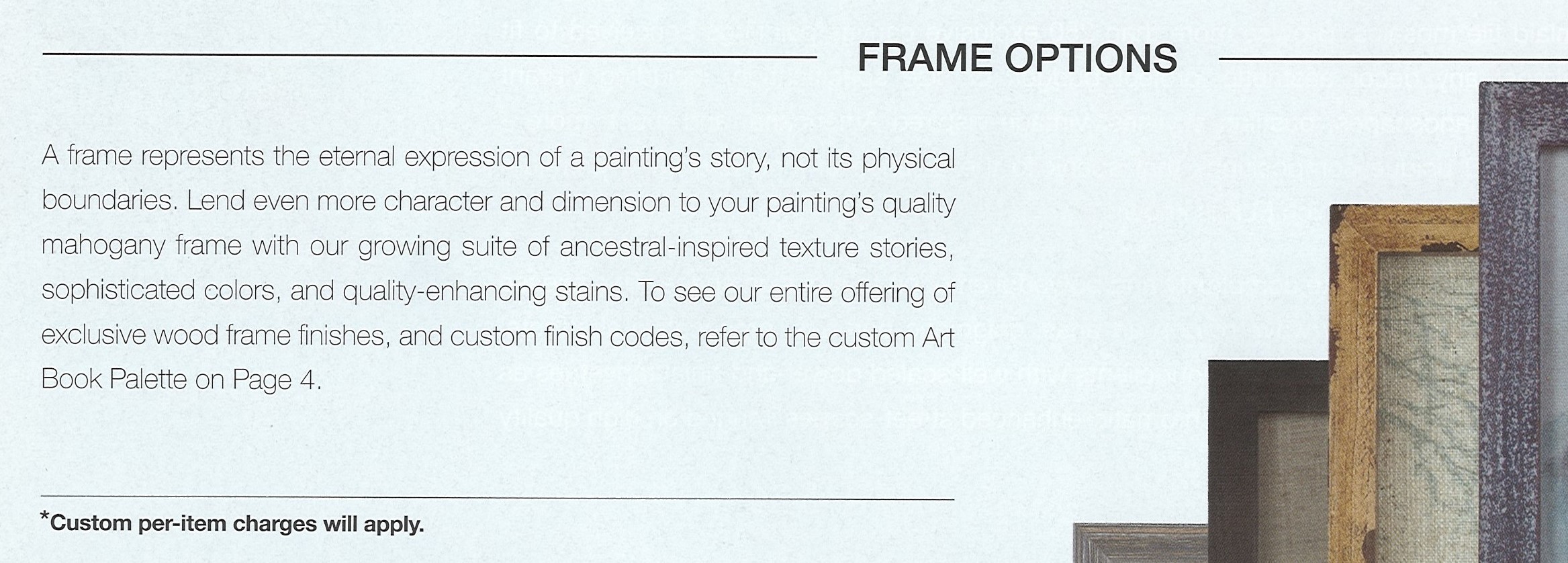 Manor paint finishes showcase hand-applied workmanship offered in a range of fashionable colors. Once our frames are brushed, sanded, and sealed, a thin layer of paint and glaze are applied, leaving a unique brushed-stroke texture that follows the flow of the natural grain. Optional Grain de Bois and ‘Clean-Matte’ texturing is available for all Manor finish colors