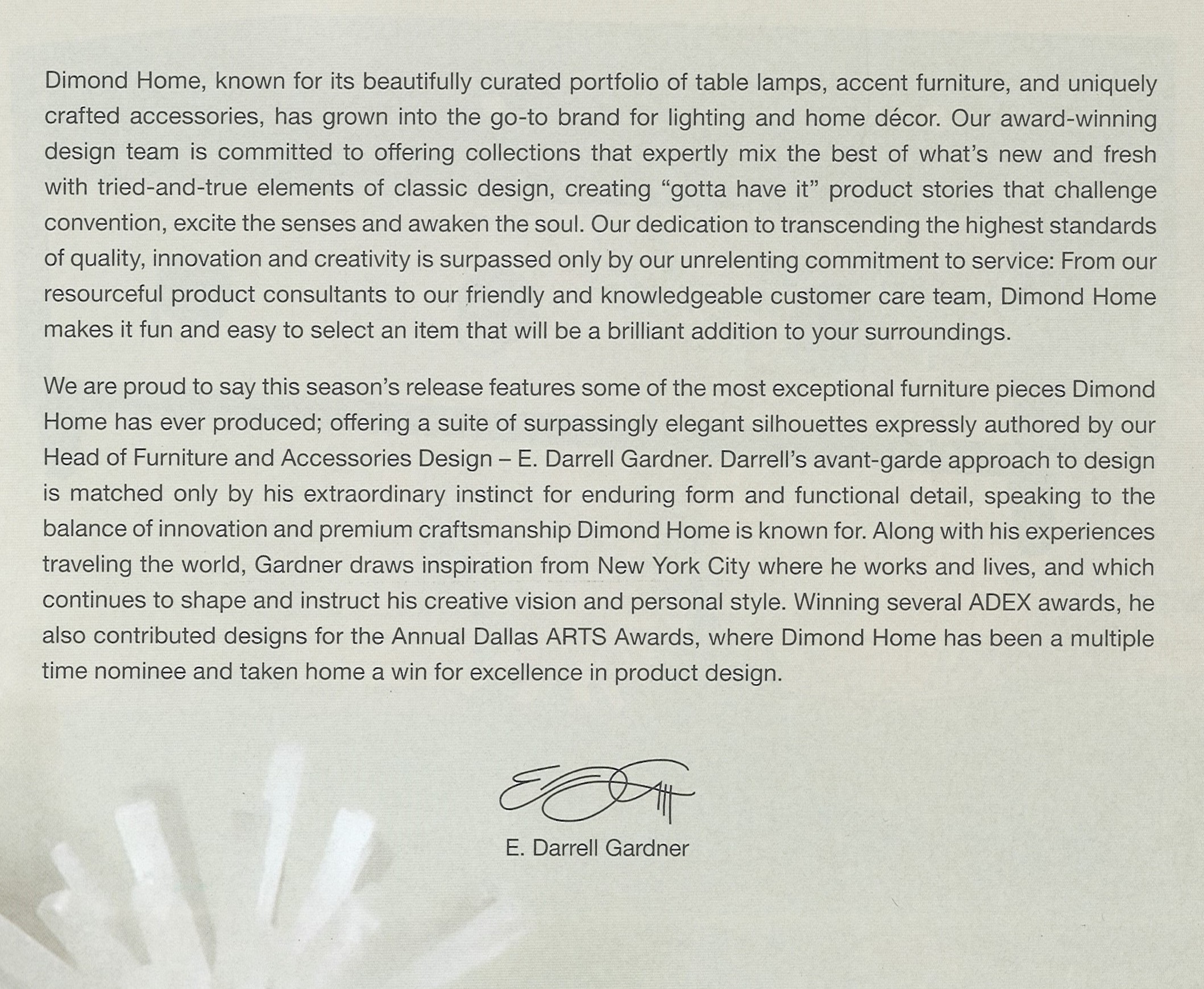 Dimond Home employs artisans, not factory workers. We spend countless hours working on the manufacturing floor with our team of master craftsmen, refining designs and developing proprietary finishes. This vital infrastructure allows us to move rapidly from concept to market, keeping us on trend, without sacrificing quality or authenticity at any stage. And we adopted a market-driven design process – not just focus groups, but a holistic approach involving retailers, sales reps and other designers and consumers. This allows us to bring trend setting products to the market months before anyone else – When retailers and designers visit our showrooms they see spot-hot looks that energize and inspire them.