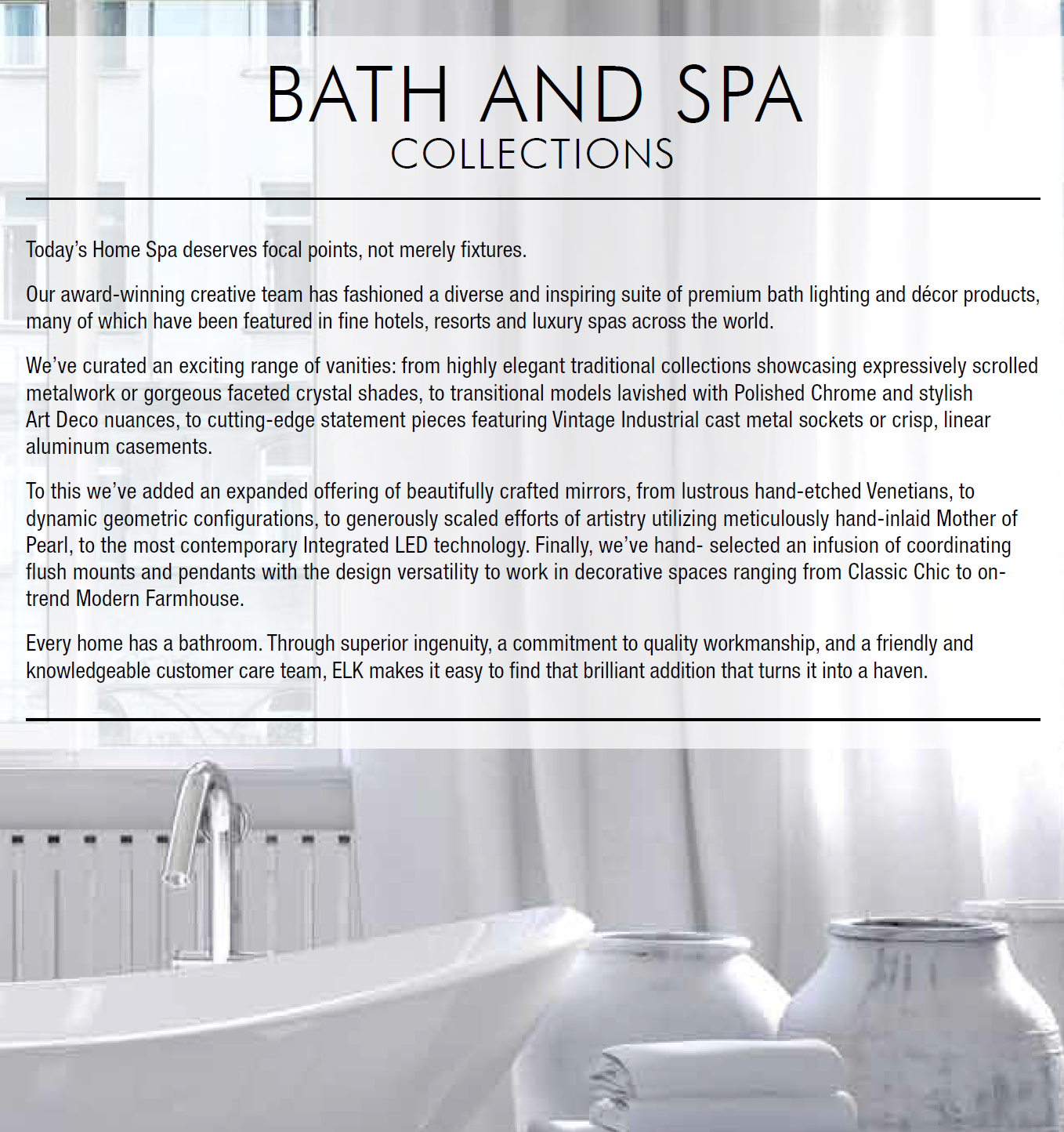 As the principal copywriter at ELK Group International, I created original, ideative copy spanning ten-plus exclusive Lifestyle brands, each with its own unique home décor personality. The copy solutions I provided for ELK continue to find portfolio-wide application in EGI brand catalogs and brochures, affiliated ecommerce websites, showroom displays, and sales and training materials – as well as regular use by national in-house and Independent sales reps in their social media and marketing efforts http://www.elkgroupinternational.com